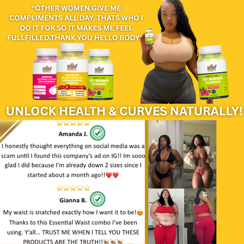 "I’m not gonna lie, I was skeptical at first 😅 but these products REALLY work. I’ve dropped 2 sizes and my curves are looking more defined than ever. Hello Body gave me back my confidence!" -