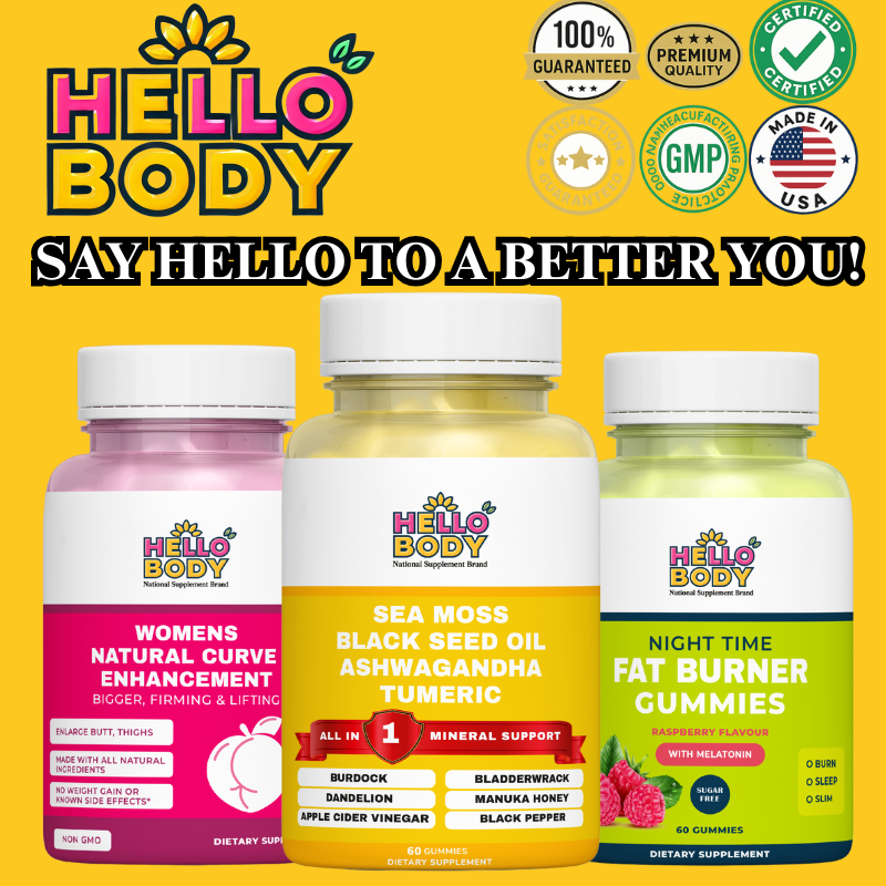 We created Hello Body as a space for real transformation—inside and out. From our curve-enhancing formulas to our fat-burning gummies, every product is made to support your body’s natural beauty, energy, and rhythm.
